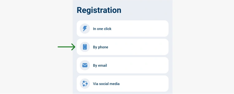 | By phone number | It is a safe and convenient option. Download 1xBet, use your phone number as your ID, and get a confirmation code to activate your account. Fast and efficient, this method directly links your account to your mobile phone number. |